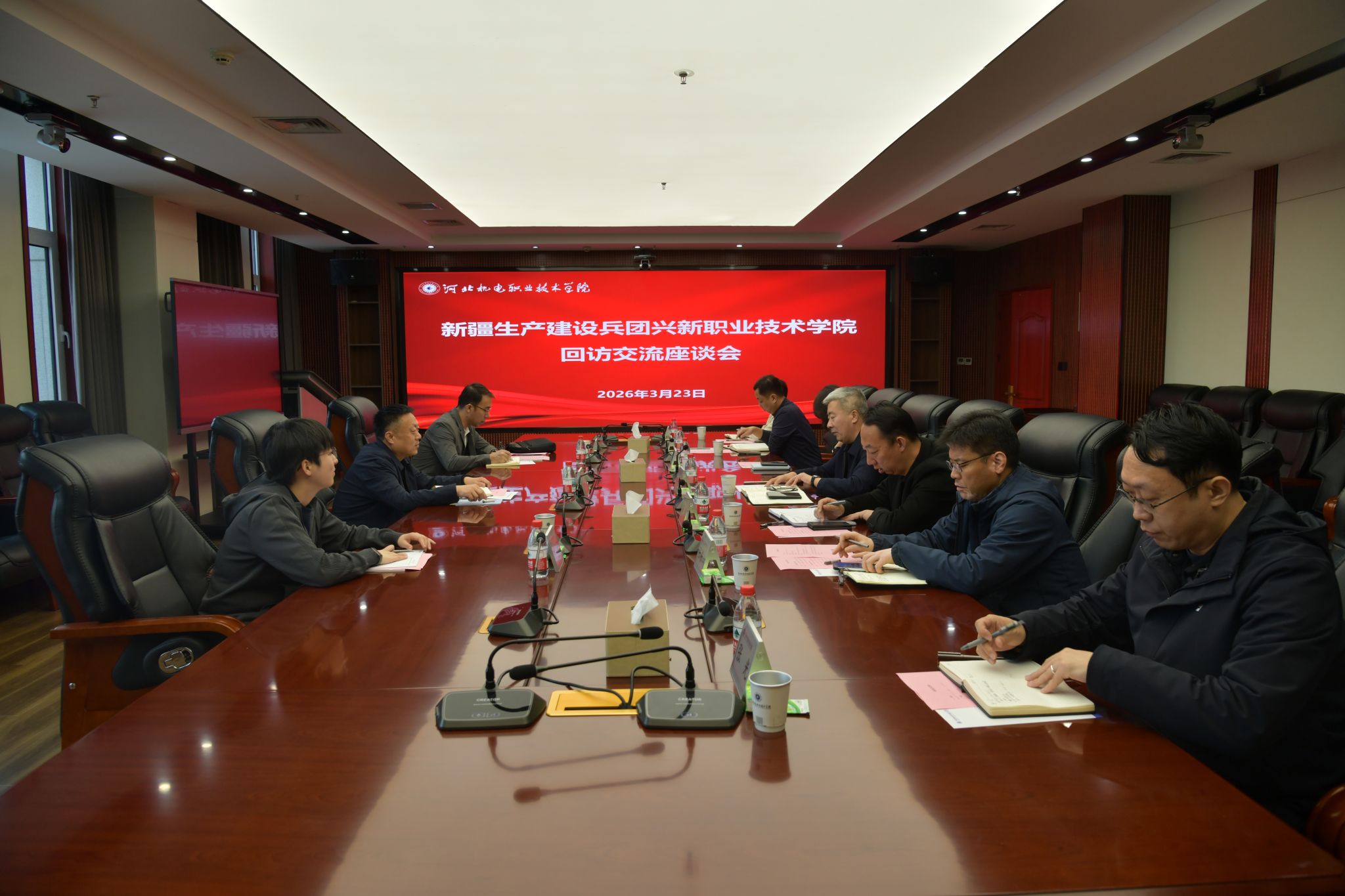 3月23日,新疆生产建设兵团兴新职业技术学院副院长马世强、组织人事处副处长孙东辉、干事赵妤等一行3人来我校回访交流。我校副校长赵晓东出席并主持座谈会。